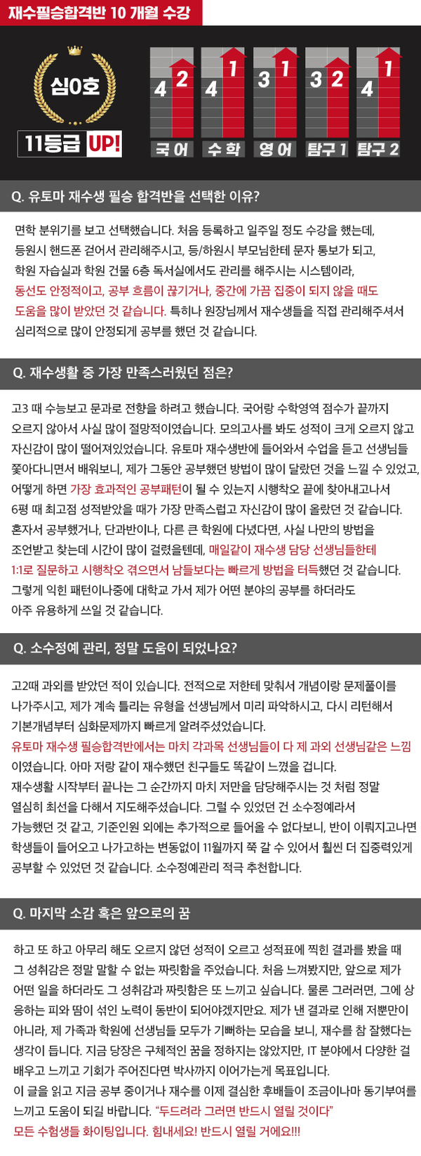 대치동 사관학교 전문 학원 유토마 교육에서