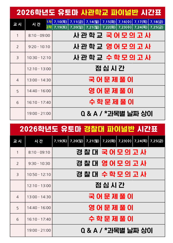 2026학년도 사관학교 1차 시험 대비 파이널 특강반 (유토마 7일의 기적)