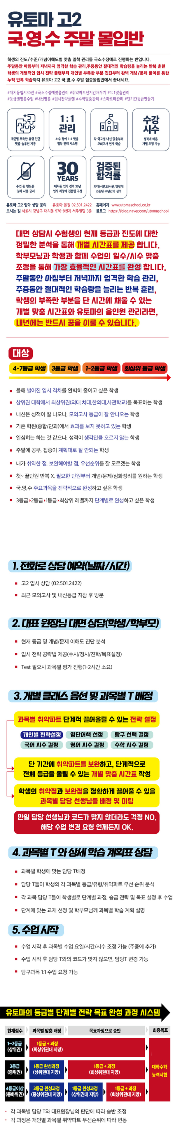 고2 국영수 집중관리반(주말반) 극소수정예 초밀착 맞춤관리 2026-01-14