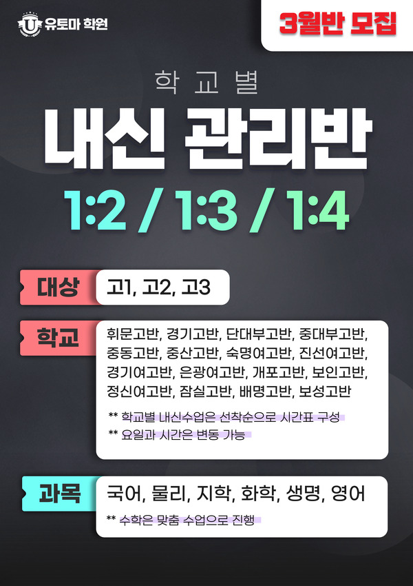 <유토마 1:2 1:3 1:4 고등부 내신 관리반 개강>
