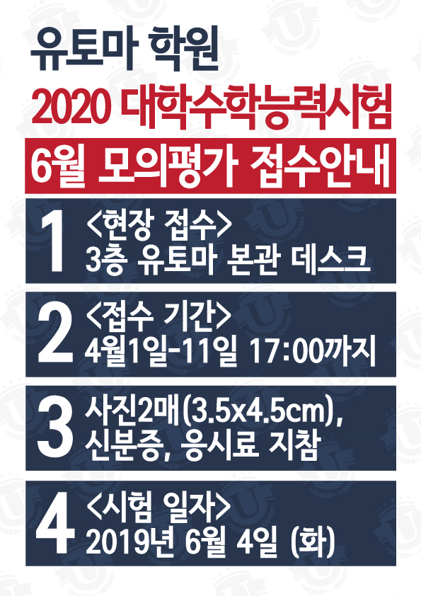1. 6월 모의평가 시험 일시 : 6. 4.(화) / 대치동 유토마 학원 본관