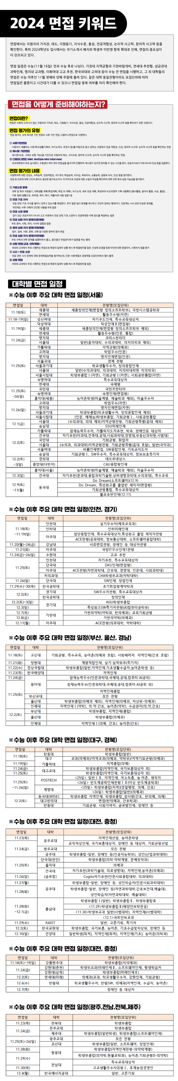 - 각 학교별 기출분석 및 예상 면접 질문 분석 대비