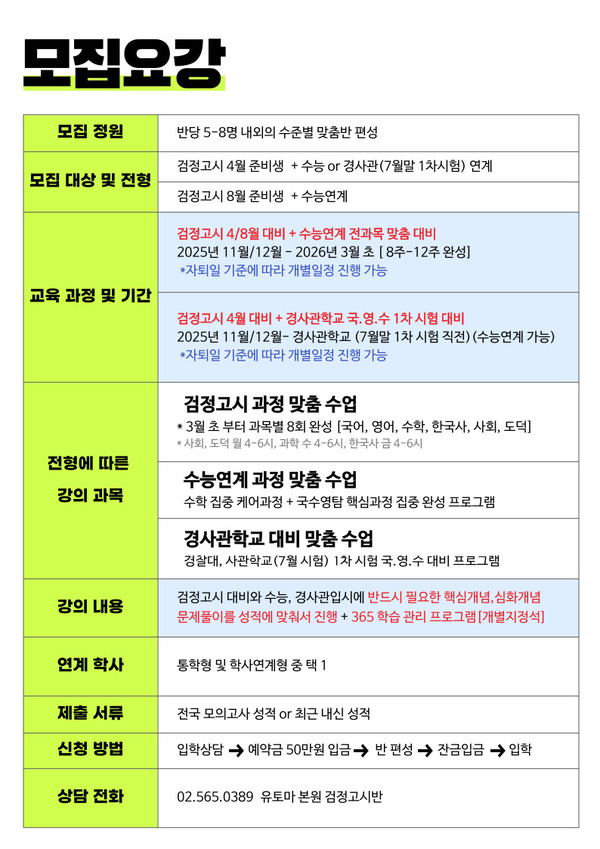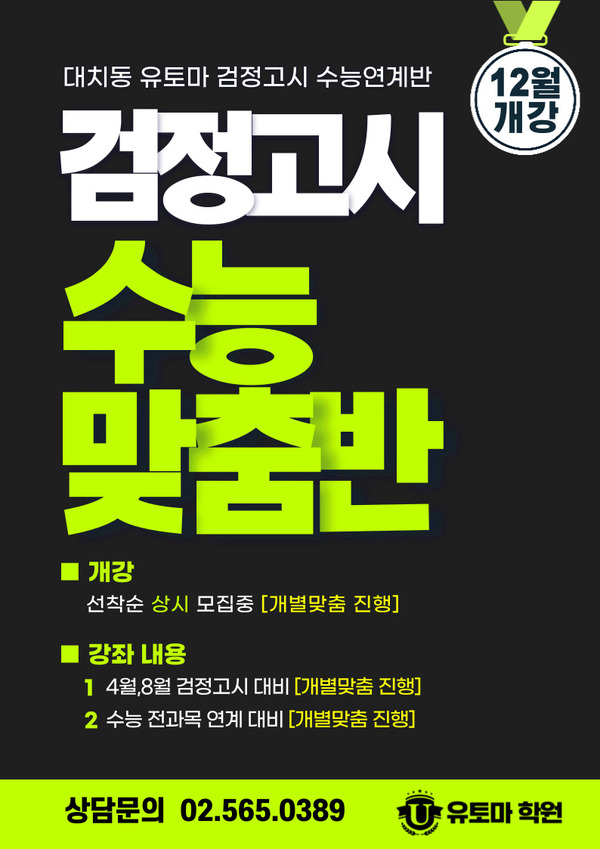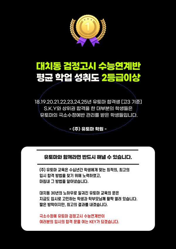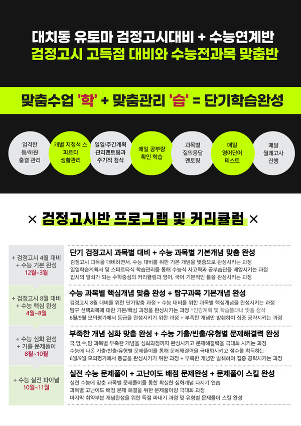 - 대치동 30년 노하우 유토마의 재수생 전문팀이 직접 관리하는 검정고시 수…