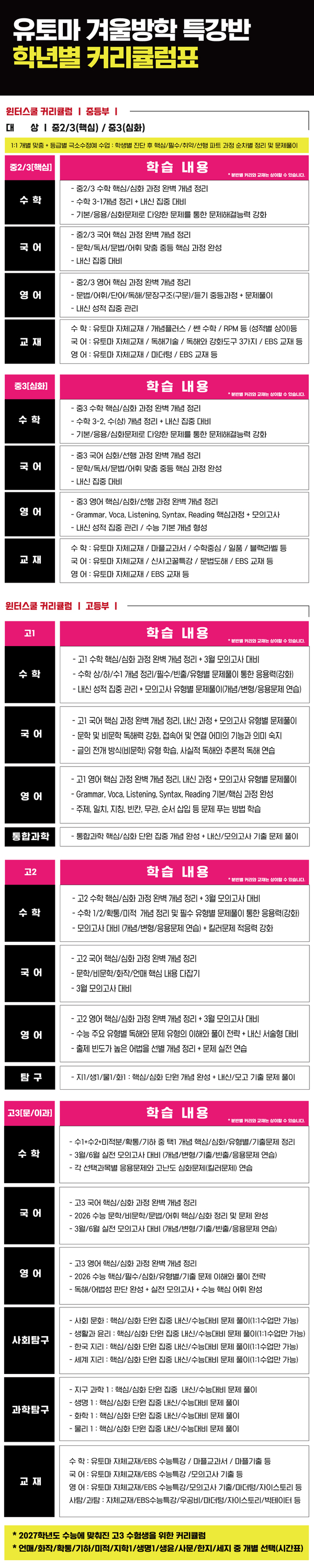 2026 유토마 윈터스쿨 (자물쇠반) 개강! - - 대치동 극소수정예 관리 학원 - - 대치동 수십년의 노하우와 젊은 입시 감각의 입시팀 - - 국어 영어 수학 탐구 단기간 핵심만 집중적으로 공략하는 대치동 겨울방…